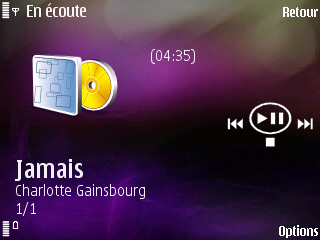 L’interface très « iPod »-dienne du lecteur multimédia reste loin derrière le Walkman 2.0 de SonyEricsson. Il manque également une interpénétration des modules vidéo, podcast, photos et musique « à la iTunes ». Nokia devra parfaire cette interface pour proposer un produit homogène et aussi simple à manipuler qu’un iPod. Nous n’y sommes pas.. Le clavier multimédia coulissant (à gauche) se révèle pratique : lecture, titre suivant ou précédent, avance rapide, stop.