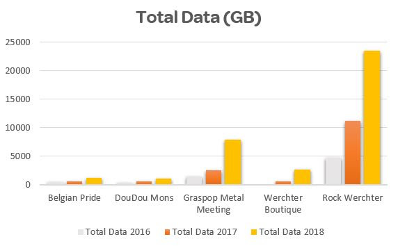 L’opérateur communique également aujourd’hui sur une explosion du volume de communications mobiles durant les premiers gros événements de la saison 2018, dont Werchter. La consommation de données y a été multipliée par 4 pour Werchter Boutique. Et par 3 durant le Graspop. Le week-end dernier, le bond a atteint 100% pour les clients Telenet Mobile / Base durant Werchter.