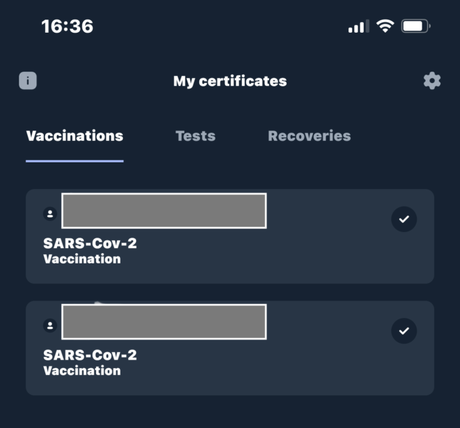 L’application donne accès aux certificats de guérison et de test de Sciensano, ainsi que les certificats de vaccination provenant des centres de vaccination ou des établissements de soins de santé. Attention, un certificat de vaccination est valable pendant un an. Si les données ne sont pas exactes, il suffit de se re-connecter avec l’application itsme.