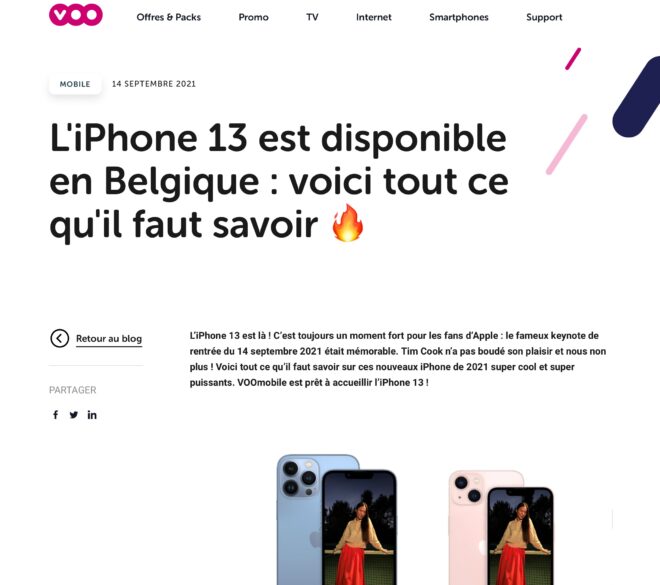 - VOOmobile commercialise l’iPhone 13 à partir de 139€, en combinaison avec l’option Data 20GB à 38€ par mois.
