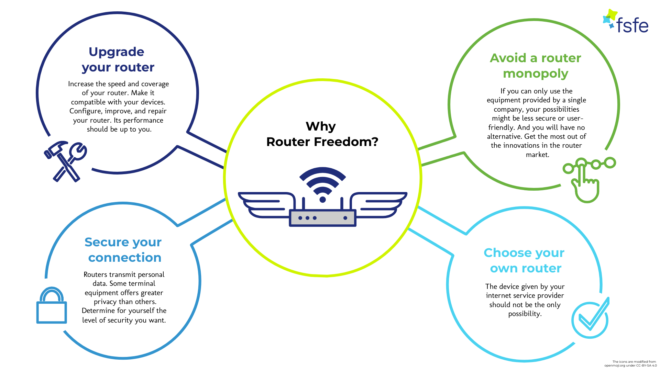La plupart des modems, routeurs ou systèmes mesh du marché sont aujourd’hui équipés d’un système d’authentification standardisé (par exemple PPOE avec VLAN pour la fibre optique ou le VDSL). L’imposition d’un modem par l’opérateur n’est donc plus réellement justifiée. La FSF Europe est d’ailleurs très impliquée dans le dossier au plus haut niveau européen.